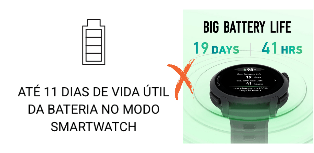Se existe uma categoria onde o Coros Pace 4 simplesmente atropela o Forerunner 165, é a bateria.