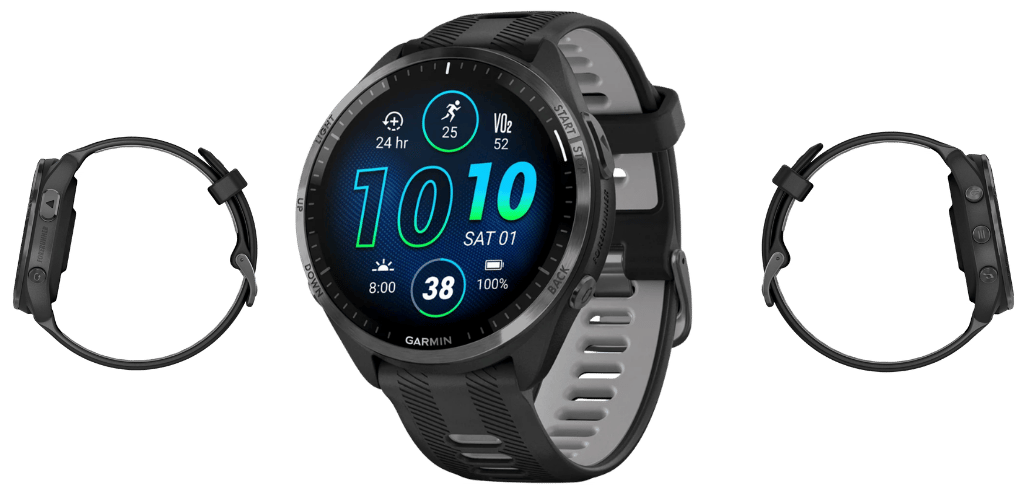 O 965 tem tudo que um triatleta ou corredor amador precisa: métricas avançadas de corrida, status de treinamento, Body Battery, monitoramento de sono e recuperação, sugestões diárias de treino adaptadas ao seu desempenho, PacePro, perfis para multiesportes, GPS preciso, armazenamento para músicas e, claro, mapas offline completos.