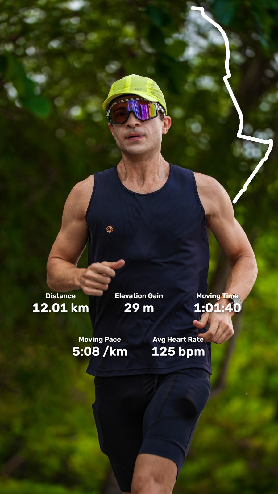 Em resumo, isso significa que o vídeo mostra o pace caindo na subida, a frequência cardíaca aumentando, o traçado do GPS avançando no mapa e assim por diante. É outro patamar aqui…