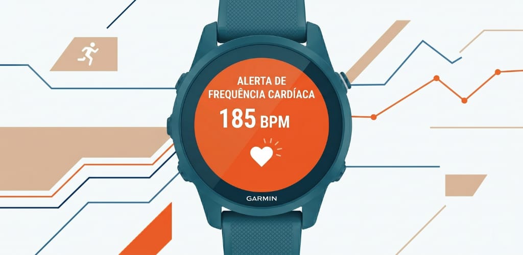 Como ativar (no Forerunner 970): mantenha pressionado o botão central e vá em Configurações do relógio > Notificações e alertas > Saúde & bem-estar > Alertas de frequência cardíaca anormal. Selecione Alerta FC alta ou Alerta FC baixa e defina o valor.